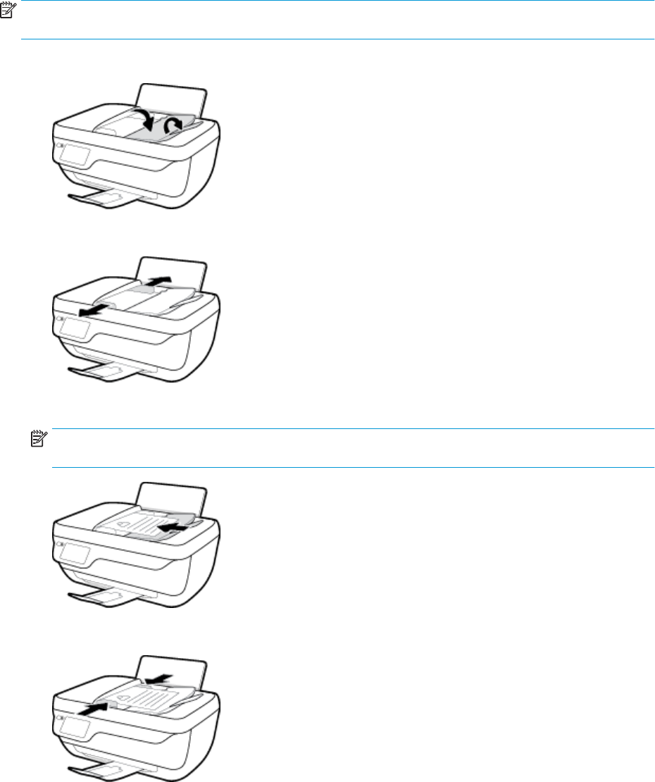 3. Lägg i originalet med trycksidan uppåt och överdelen först i dokumentmataren.