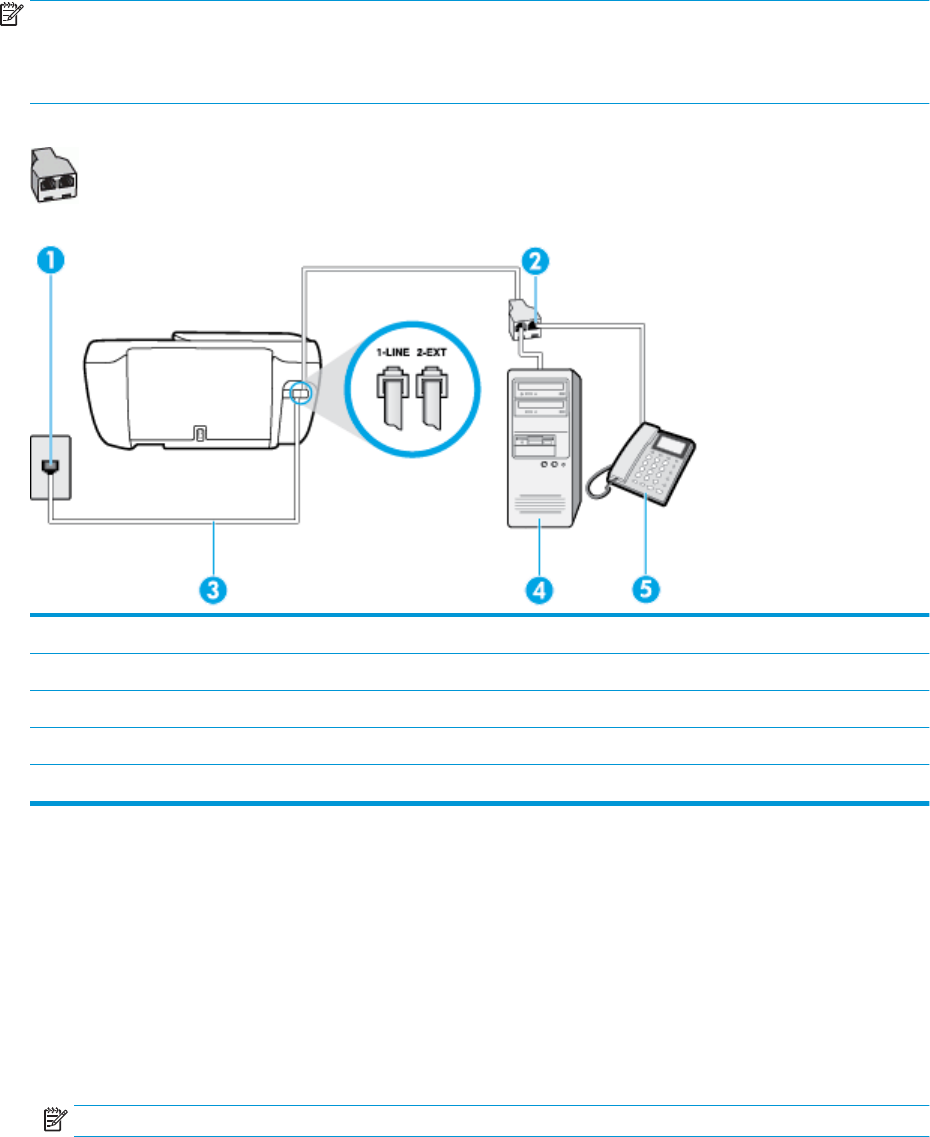 OBS! Om datorn endast har en telefonport måste du köpa en parallell linjedelare, enligt illustrationen. (En