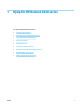 8 SVWW Ansluta skrivaren ● Ansluta skrivaren till ett trådlöst nätverk med en router ● Ansluta trådlöst till skrivaren utan någon router ● Inställningar för trådlöst ● Anslut skrivaren till datorn med en USB-sladd (ej nätverksanslutning) ● Byta från en USB-anslutning till ett trådlöst nätverk ● Avancerade skrivarhanteringsverktyg (för nätverksanslutna skrivare) ● Tips för installation och användning av en nätverksansluten skrivare 85