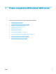 2 PLWW Rozpoczęcie pracy ● Elementy drukarki ● Panel sterowania i wskaźniki stanu ● Ładowanie materiałów ● Ładowanie oryginału ● Podstawowe informacje dotyczące papieru ● Otwieranie oprogramowania drukarki HP (Windows) ● Tryb uśpienia ● Tryb cichy ● Automatyczne wyłączanie 3