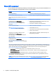 5 Strømstyring Datamaskinen kan gå enten på batteristrøm eller på nettstrøm. Når datamaskinen går på bare batteristrøm og du ikke har noen vekselstrømkilde tilgjengelig for å lade batteriet, er det viktig å overvåke og spare på batteriladingen. Slå datamaskinen av FORSIKTIG: Data som ikke er lagret, går tapt når datamaskinen slås av. Avslutningskommandoen lukker alle åpne programmer, inkludert operativsystemet, og slår deretter av skjermen og datamaskinen.