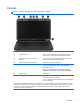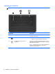 (1)   Área del TouchPad Mueve el puntero en la pantalla y selecciona o activa los