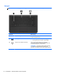 (1)   Touchpadzone Hiermee kunt u de aanwijzer (cursor) op het scherm