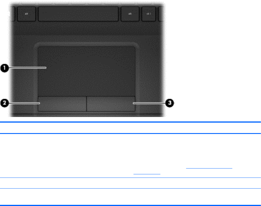 (1)  Obszar płytki dotykowej TouchPad Umożliwia przesuwanie wskaźnika po ekranie, a także
