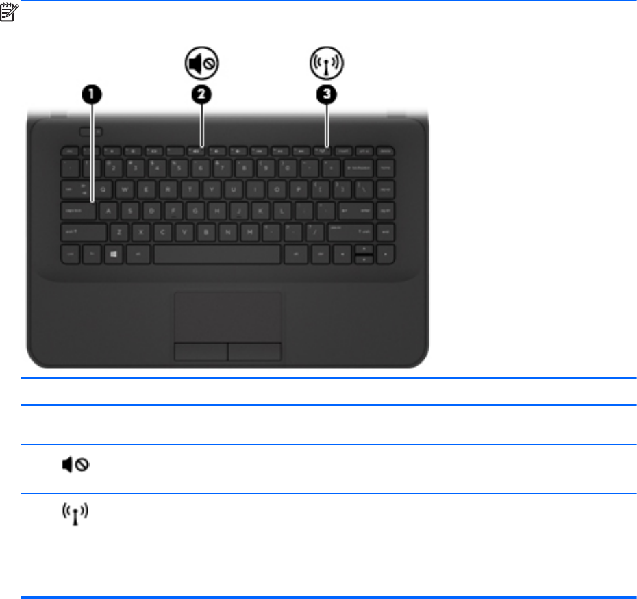 (1)  Wskaźnik caps lock Świeci: tryb caps lock jest włączony, co umożliwia pisanie