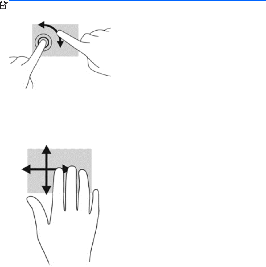 Aseta kolme sormea TouchPadin käyttöalueelle ja pyyhkäise sormillasi kevyellä ja nopealla
