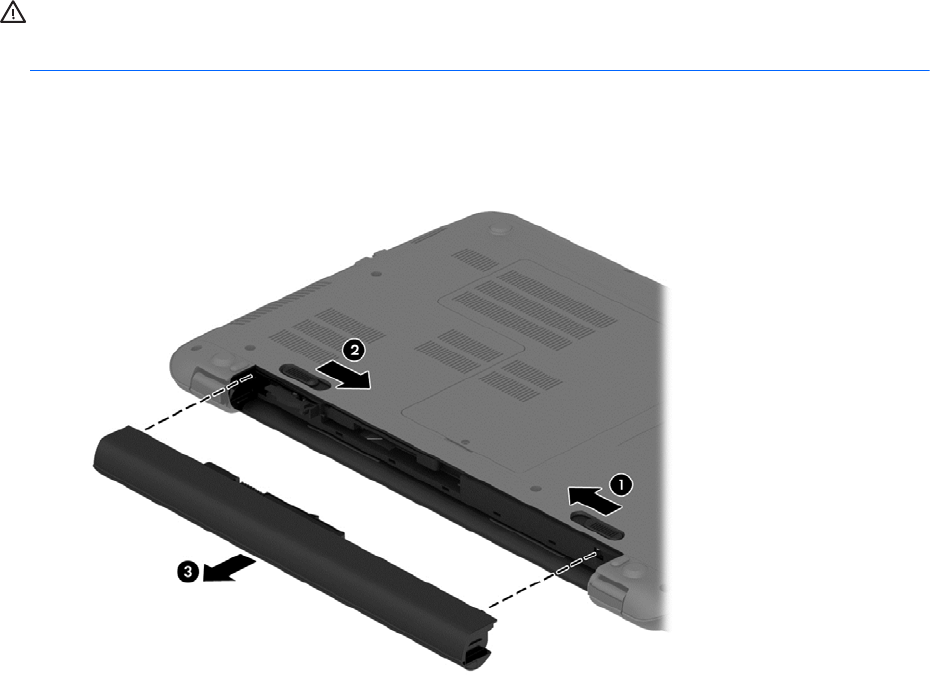 ● Poista käyttäjän vaihdettavissa oleva akku tietokoneesta, kun sitä ei käytetä tai ladata yli