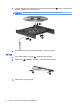 3. Įkiškite apsauginio kabelio fiksatorių į apsauginio kabelio lizdą kompiuteryje (3) ir užrakinkite