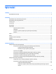 Indeks A aktualizacje krytyczne, oprogramowanie 57 aktualizowanie programów i sterowników 60 anteny bezprzewodowe, położenie 9 anteny WLAN, położenie 9 anteny WWAN, położenie 9 Automatic DriveLock (Automatyczne zabezpieczenie DriveLock)) 55 B bateria niskie poziomy naładowania baterii 43 oszczędzanie energii 45 przechowywanie 45 rozładowanie 42 utylizacja 46 wyjmowanie 43 wymiana 46 wyświetlanie informacji o poziomie naładowania 42 bateria, wyszukiwanie informacji 41 BIOS aktualizowanie 71 pobieranie aktual