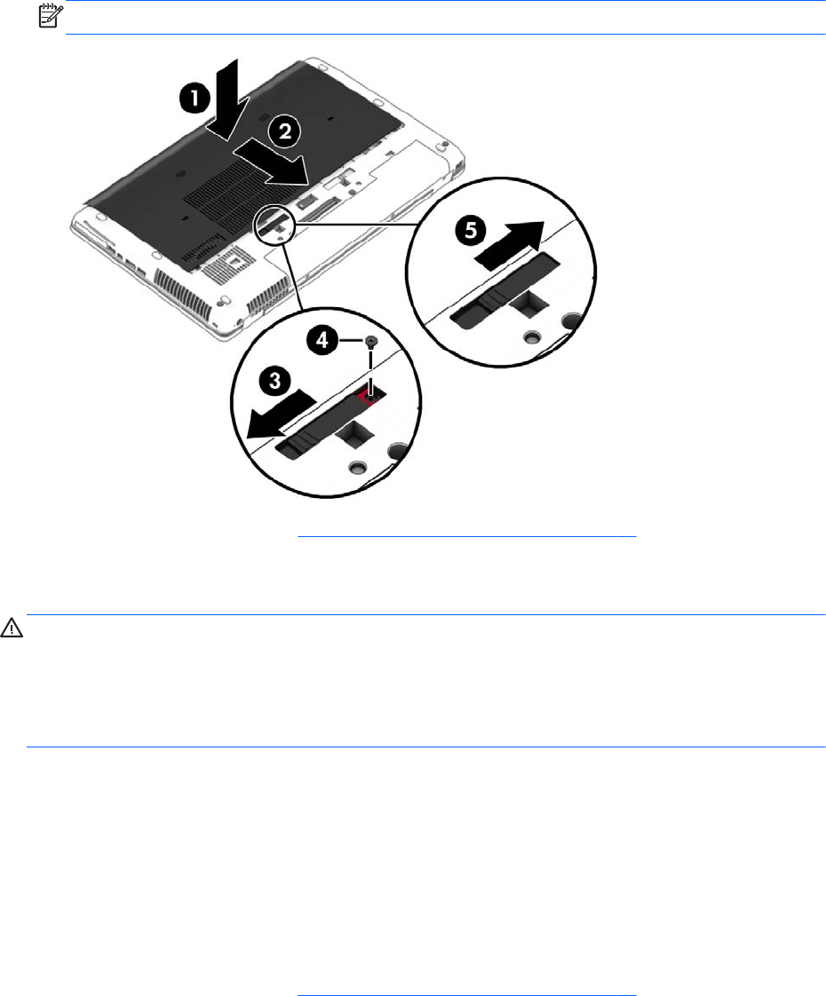 4. S ležištem baterije okrenutim prema vama, gurnite zasun za otpuštanje servisnog poklopca