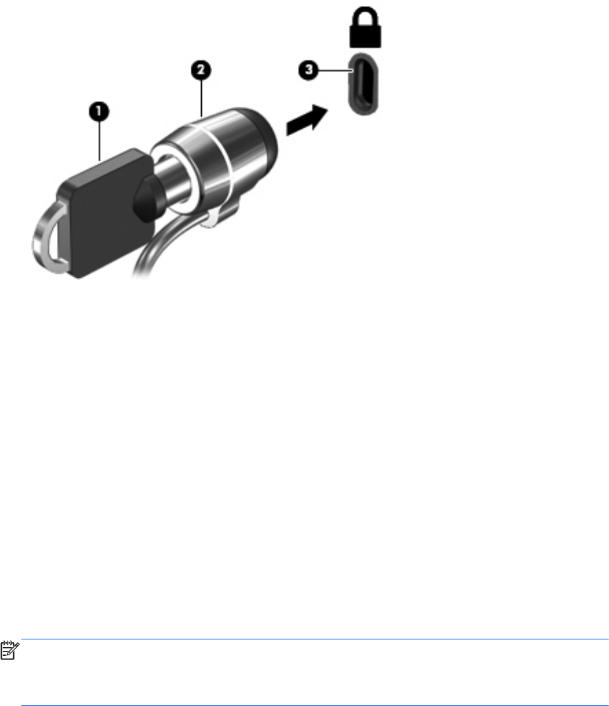 3. Umetnite bravu kabla u utor sigurnosnog kabla na računaru (3), a zatim bravu kabla zaključajte
