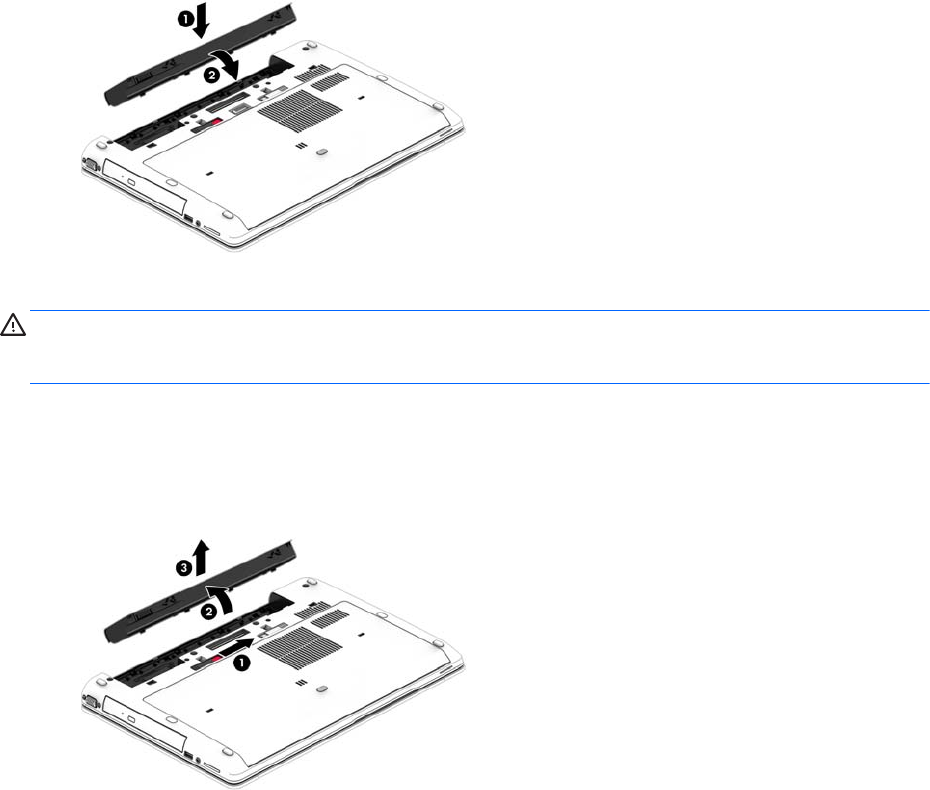 an den Öffnungen am Computer aus. Drücken Sie den Akku (2) nach unten, so dass er
