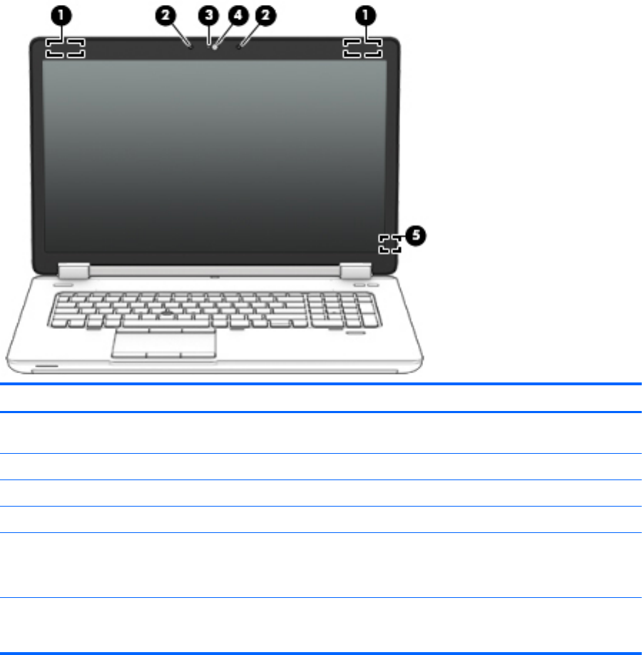 (1) WLAN-antenner (2)* (endast vissa modeller) Skickar och tar emot trådlösa signaler över lokala trådlösa