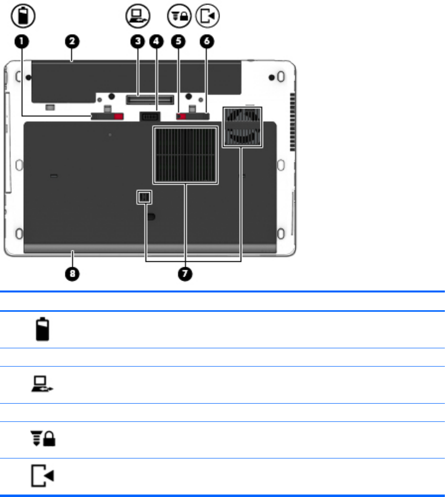 Batteriets frikopplingsmekanism Frigör batteriet.