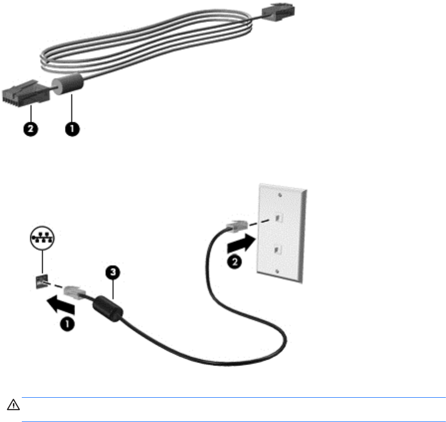 VARNING: Anslut inte en modem- eller telefonkabel till RJ-45-jacket (för nätverk). Du kan få
