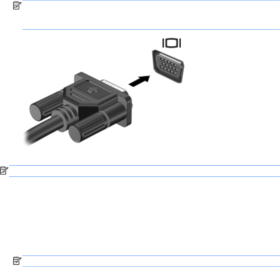 visningsenhet kan anslutas till datorn, t.ex. en extern VGA-bildskärm eller VGA-projektor.