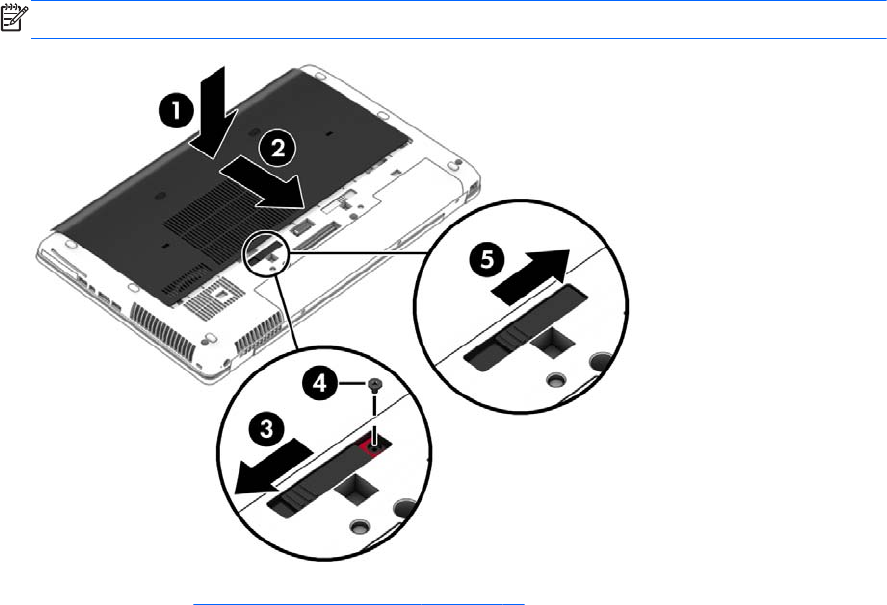 4. Vänd batterifacket mot dig, för serviceluckans frikopplingsmekanism åt vänster (3) och, om du