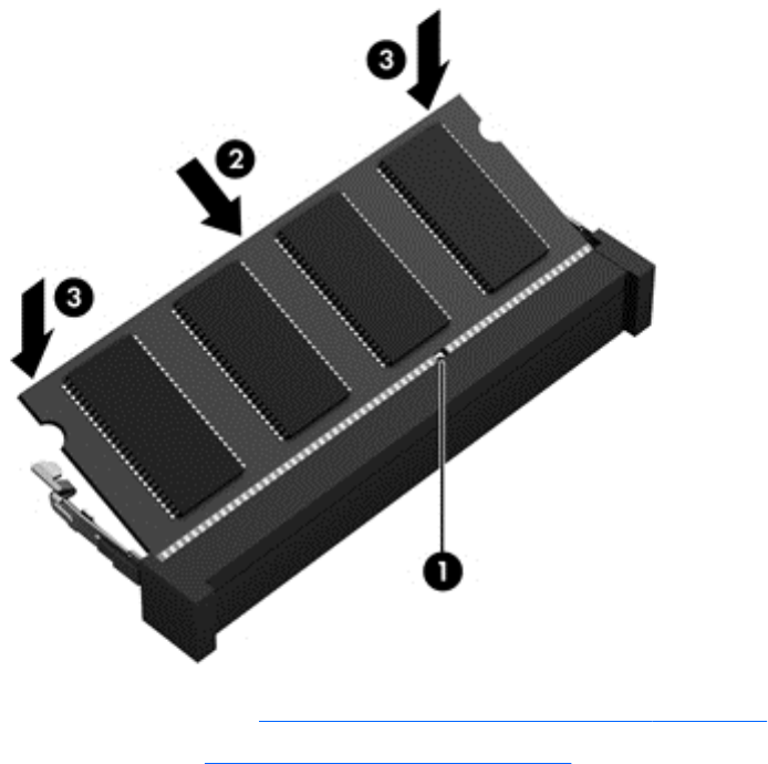 c. Tryck försiktigt ned minnesmodulen (3). Tryck både på den vänstra och högra änden av