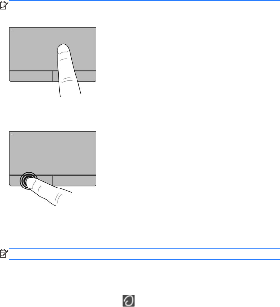 HUOMAUTUS: Jos siirrät osoitinta TouchPadin avulla, sinun on nostettava sormesi TouchPadilta