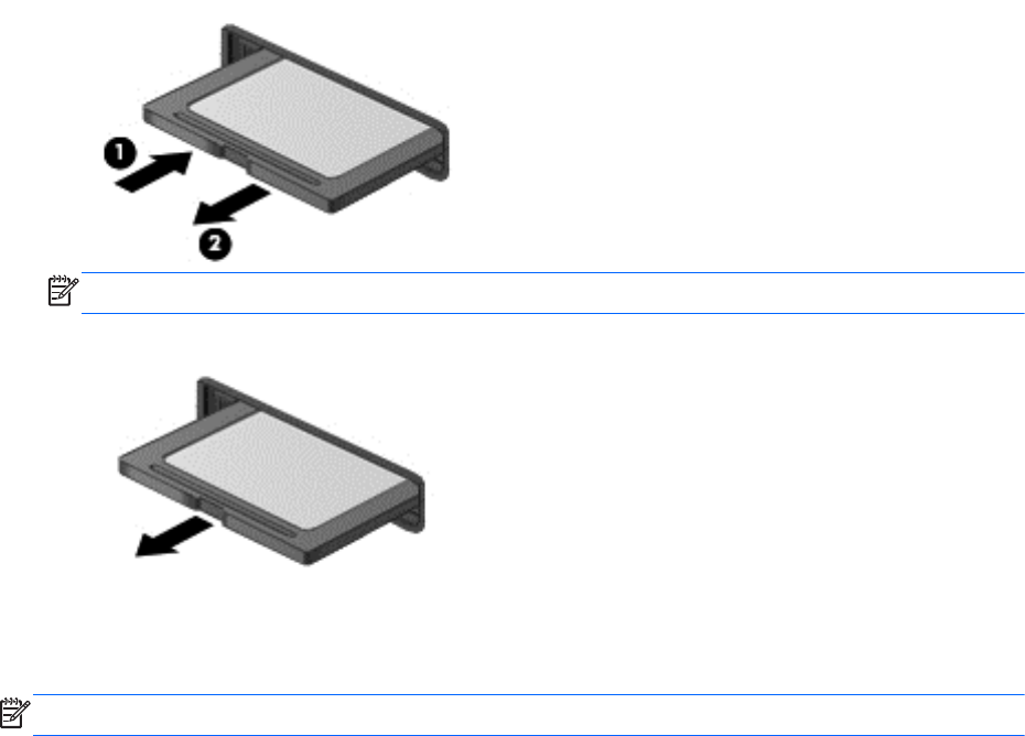 3. Poista kortti painamalla sitä (1) ja vetämällä se tämän jälkeen ulos aukosta (2).