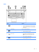 (5) Sol Dokunmatik Yüzey düğmesi Harici fare üzerindeki sol düğme gibi işlev görür.
