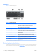 Tastatūra Attēls 1-4 Tastatūras komponenti Tabula 1-3 Tastatūras komponenti 1 1 Funkciju taustiņi Īpašo funkciju veikšana ir atkarīga no izmantotās lietojumprogrammas. 2 Rediģēšanas taustiņi T.sk. šādi: Insert (Levietot), Home (Sākums), Page Up (Lappusi uz augšu), Delete (Dzēst), End (Beigas) un Page Down (Lappusi uz leju). 3 Statusa indikatori Norāda datora statusu un tastatūras iestatījumus (Num Lock (Ciparslēgs), Caps Lock (Lielie burti) un Scroll Lock (Ritslēgs)).