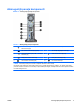 Aizmugurējā paneļa komponenti Attēls 1-3 Aizmugurējā paneļa komponenti Tabula 1-2 Aizmugurējā paneļa komponenti 1 Izvada savienotājs ar atsevišķu barošanu audio ierīcēm (zaļš) 6 Strāvas vada savienotājs 2 PS/2 tastatūras savienotājs (purpura) 7 TV uztvērējs (iegādājams atsevišķi) 3 Universālā seriālā kopne (USB — Universal Serial Bus) (6) 8 Audio ievada savienotājs (zils) 4 DisplayPort monitora savienotājs 9 PS/2 peles savienotājs (zaļš) 5 VGA monitora savienotājs (zils) 10 RJ-45 tīkla s