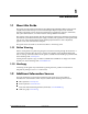 Contents 1 Introduction 1.1 About this Guide . . . . . . . . . . . . . . . . . . . . . . . . . . . . . . . . . . . . . . . . . . . . . . . . . . . . . . . . . . . . . 1.1.1 Online Viewing . . . . . . . . . . . . . . . . . . . . . . . . . . . . . . . . . . . . . . . . . . . . . . . . . . . . . . . . . 1.1.2 Hardcopy . . . . . . . . . . . . . . . . . . . . . . . . . . . . . . . . . . . . . . . . . . . . . . . . . . . . . . . . . . . . . . 1.2 Additional Information Sources . . . . . . . . . . . . . . . . . .