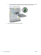 7. Install four M3 metric guide screws in the lower holes on each side of the drive (1). HP has provided