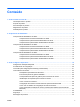 Conteúdo 1 Como localizar recursos HP .......................................................................................................................... 1 Informações sobre o produto ............................................................................................................... 2 Suporte do produto ............................................................................................................................... 3 Documentação do produto ..................................