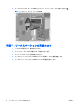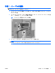 手順 1:部品の取り付けの準備 注記: せん。 ワークステーションはモデルによって異なります。 図はすべて、例を示しているに過ぎま ワークステーションの内部部品へのアクセス 1. この取り付け作業のためにワークステーションを準備するにあたって支援が必要な場合は、 http://www.hp.com/support/workstation_manuals(英語)で、お使いのワークステーションのサ ービス ガイドに記載されている取り外しおよび交換の手順を参照してください。 注記: HP シリーズ ワークステーションの場合、これらの手順は、お使いのワークステー ションと同梱で出荷された Documentation and Diagnostics CD の『ユーザ ガイド』にも記載さ れています。 2. ワークステーションの電源を切り、電源コードを抜きます。 3. すべての外部デバイスの電源を切り、ワークステーションから取り外します。 4. サイド アクセス パネルを取り外します。 部品の取り外し 1.