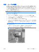 手順 3:ケーブルの接続 HP 600 ワークステーションと HP 800 ワークステーションでは、内部ベイの容量がいっぱいに なっていない場合、未使用の内部ハード ドライブ ベイ用のプレインストールされたブラインドメイ ト データ ケーブルは、システム ボードから外して、このブラケットに取り付けられたハード ドラ イブの適切な接続を有効にする必要があります。 内部ハード ドライブとオプティカル ベイ ハー ド ドライブすべてが接続された後、ブラインドメイト ケーブルがシステム ボード上の次の空いて いるポートに再接続される場合があります。 注記: システム ボード上のコネクタ類の位置を見つけるには、サイド アクセス パネルに貼付さ れているサービス ラベルを参照してください。 電源とデータ ケーブルを接続します。 1. オプティカル デバイス電源供給ケーブルを見つけて、ハード ドライブに接続します 2. ワークステーションのハードウェア構成に適合するハード ドライブ キットに付属のケーブルか ら SATA 内部接続データ ケーブルを選択します。 3.