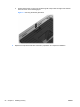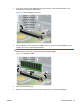 a. Insert the tab on the airflow guide into the slot next to the yellow ODD release lever (1), and