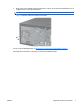 8. Monter skruen fra indersiden af den forreste del af kabinettet, så den skrues ind i frontpanelet. Skruehullet er placeret på venstre kant af kabinettet ved siden af den øverste harddiskplads. Figur 52 Installation af sikkerhedsskrue til frontpanel 9. Sæt adgangspanelet på igen. 10. Tilslut netledningen igen, og tænd computeren. 11. Lås alle sikkerhedsanordninger, som blev deaktiveret, da adgangspanelet blev afmonteret.