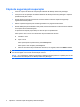 Cópia de segurança/recuperação ● Criar um conjunto de discos de recuperação utilizando HP Backup & Recovery Manager. ● Criar pontos de recuperação do sistema utilizando HP Backup & Recovery Manager e copiá-los periodicamente para o disco. ● Guarde ficheiros pessoais na pasta Os meus documentos e efectue cópias de segurança regularmente destas pastas. ● Efectue cópias de segurança de modelos guardados nos programas associados.