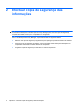 Iniciar uma recuperação no Windows Para iniciar uma recuperação no Windows, siga estes passos: 12 1. Efectue uma cópia de segurança de todos os ficheiros pessoais. 2. Seleccione Iniciar > Todos os programas > HP Backup & Recovery > Backup & Recovery Manager. 3. Clique em Next (Seguinte). 4. Seleccione Perform a recovery (Efectuar uma recuperação) e, em seguida, clique em Seguinte. 5. Siga as instruções apresentadas no ecrã.