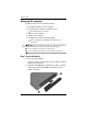 443562-001.book Page 2 Thursday, March 15, 2007 8:47 PM Troubleshooting The following suggestions may help you determine why the computer will not start up: ■ If the computer is plugged into an AC outlet, be sure that the AC outlet is providing adequate power by plugging another electrical device into the outlet. ■ If the power light on the front of the computer is blinking rapidly, replace the AC adapter with one having a higher power rating, and then plug the adapter into an AC outlet.