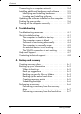Contents Connecting to a computer network . . . . . . . . . . Installing additional hardware and software . . . Identifying and installing hardware . . . . . . . Locating and installing software . . . . . . . . . Updating the software installed on the computer. Finding the user guides . . . . . . . . . . . . . . . . . . Turning off the computer correctly . . . . . . . . . . . . . . . . . . . . . . . . . 3–4 3–5 3–5 3–5 3–6 3–6 3–7 4 Troubleshooting Troubleshooting resources . . . . . . . . . . .