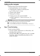First-time setup Setting up the computer Computer setup involves the following tasks: 1. Inserting the battery into the computer 2. Connecting the computer to external power ✎ The battery begins to charge. 3. Turning on the computer 4. Setting up the software 5. Creating recovery discs (recommended) to Appendix A, “Backup and recovery,” for ✎ Refer instructions.
