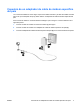 Conexión de un adaptador de cable de módem específico del país Los conectores telefónicos varían según el país. Para utilizar el módem y el cable de módem fuera del país en el que ha adquirido el equipo, debe obtener un adaptador de cable de módem específico del país. Para conectar el módem a una línea telefónica analógica que no tenga un conector telefónico RJ-11 siga estos pasos: ESWW 1. Conecte el cable de módem al conector de módem (1) del equipo. 2.