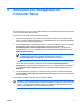 4 Auswählen der MultiBootEinstellungen Sie können MultiBoot auf verschiedene Arten einsetzen: ● Zur Festlegung einer neuen Bootreihenfolge beim Computerstart, indem Sie in Computer Setup die Bootreihenfolge ändern. ● Zur dynamischen Auswahl des Bootgeräts, indem Sie die Taste f9 drücken, während unten links auf dem Bildschirm die Meldung „f9 = Boot device menu“ (f9 = Bootgeräte-Menü) angezeigt wird, wenn der Computer startet.