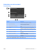 Lampjes Onderdeel Beschrijving (1) ● Aan: een geïntegreerd apparaat voor draadloze communicatie, zoals een draadloos-netwerkadapter, de HP Broadband Wireless module en/of een Bluetooth®-apparaat, is ingeschakeld. ● Uit: alle apparatuur voor draadloze communicatie is uitgeschakeld. ● Aan: de computer is ingeschakeld. ● Knipperend: de computer staat in de standbystand. ● Snel knipperend: sluit een netvoedingsadapter met meer vermogen aan.