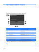 1 Uporaba kazalnih naprav Kazalne naprave računalnika so opisane na sliki in v tabeli spodaj. Komponenta Opis (1) Gumb za vklop/izklop sledilne ploščice Vključi in izključi sledilno ploščico. (2) Kazalna palica* S sledilno ploščico premikate kazalec po zaslonu in izbirate elemente na njem. (3) Levi gumb kazalne palice* Deluje kot leva tipka zunanje miške. (4) Sledilna ploščica* S sledilno ploščico premikate kazalec po zaslonu in izbirate elemente na njem.