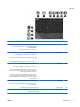 נוריות רכיב 4 תיאור ● נורית דולקת :התקן אלחוטי משולב ,כגון התקן רשת תקשורת מקומית אלחוטית ) ,(WLANמודול פס רחב אלחוטי של HPו/או התקן ® ,Bluetoothמופעל. ● נורית כבויה :כל ההתקנים האלחוטיים כבויים. ● נורית דולקת :המחשב פועל. ● נורית מהבהבת :המחשב נמצא במצב ) Sleepשינה(. ● נורית מהבהבת במהירות :יש לחבר מתאם ACבעל מתח נקוב גבוה יותר. ● נורית כבויה :המחשב כבוי או נמצא במצב ) Hibernationמצב שינה(.