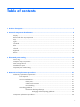 Table of contents 1 Product description ........................................................................................................... 1 2 External component identification ..................................................................................... 4 Display ................................................................................................................................... 4 Buttons and other top components ..............................................................