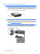 b. Jos olet poistamassa levykeaseman, irrota datakaapeli (1) ja virtakaapeli (2) aseman