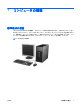 - 1 コンピュータの機能 標準構成の機能 HP Compaq dc5800 MT の機能は、モデルによって異なる場合があります。お使いのコンピュータに 取り付けられているハードウェアおよびインストールされているソフトウェアの一覧を表示するに は、診断用ユーティリティを実行します(一部のモデルのコンピュータにのみ付属しています) 。ユー ティリティの使用手順については、 『トラブルシューティング ガイド』を参照してください。 図 1-1 dc5800 MT の構成 JAWW 標準構成の機能 1