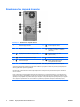 - Компоненты задней панели Таблица 1-3 Компоненты задней панели 1 Разъем шнура питания 6 Сетевой разъем RJ-45 2 Переключатель напряжения 7 Разъем линейного выхода для звуковых устройств с питанием (зеленый) 3 Аудиоразъем линейного входа (синий) 8 Разъем клавиатуры PS/2 (фиолетовый) 4 Разъем последовательного порта 9 Разъем мыши PS/2 (зеленый) 5 Разъем монитора 10 Шина USB (универсальная последовательная шина) ПРИМЕЧАНИЕ: Расположение и количество разъемов может быть разным для различных м