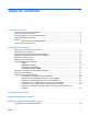 - Tabla de contenido 1 Recursos del producto Recursos de la configuración estándar ................................................................................................ 1 Componentes del panel frontal ............................................................................................................ 2 Componentes del lector de tarjetas multimedia ................................................................................... 3 Componentes del panel trasero ............................