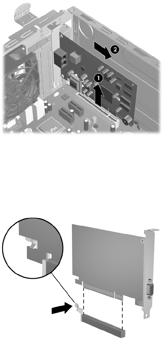 için yuvasından (1) yukarı doğru ve kasanın içinden (2) bilgisayarın dışına çekin. Kartın diğer